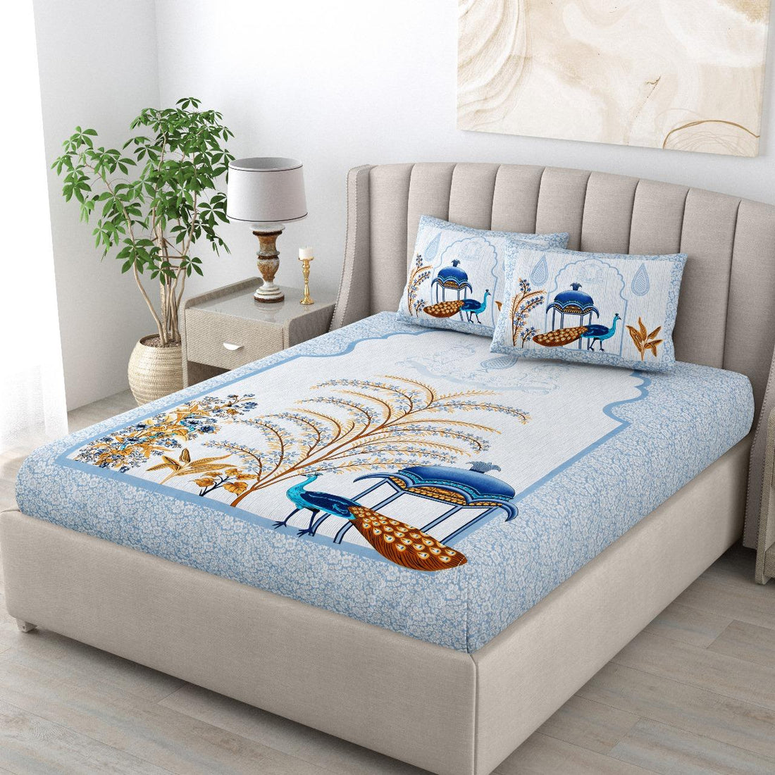 Adorn your space with the grandeur of Indian artistry. This collection features iconic peacock patterns framed by elegant floral borders, evoking the grace of traditional craftsmanship. Perfect for those who appreciate culture woven into comfort, it turns every bedtime into a visual retreat.