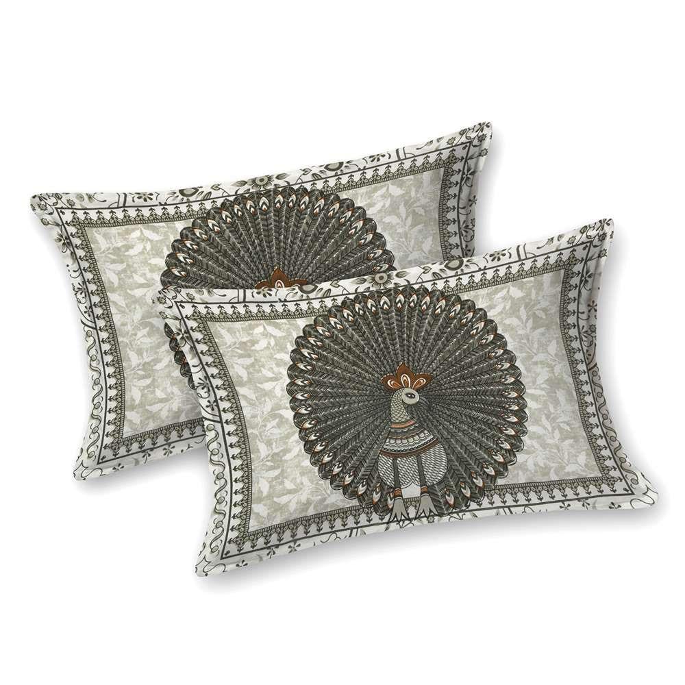 "Elegant Green Peacock Print Pure Cotton King Size Bedsheet